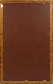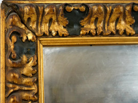 Cornice montata a specchiera di linea rettangolare, XX secolo, in legno intagliato e dorato, cm h 101x160, (difetti)