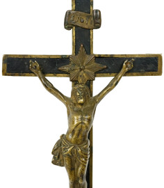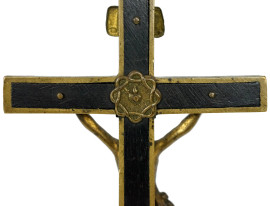 Crocifisso in ebano e ottone, inizi XX secolo, cm 19.5x8.8x2.2, (difetti)