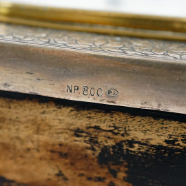 Cronometre, orologio da tavolo in legno rivestita in argento 800, cm h 10,5x10x4, prima metà XX secolo, (meccanismo da revisionare).
