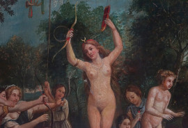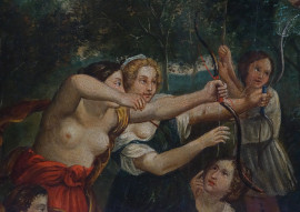 Da Domenichino, La caccia di Diana, olio su tavola, cm 66x81,5, XIX secolo
