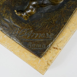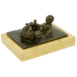 Gioco di putti, scultura in bronzo, cm h 6x16x12, base in marmo