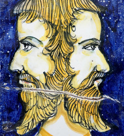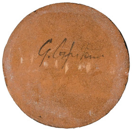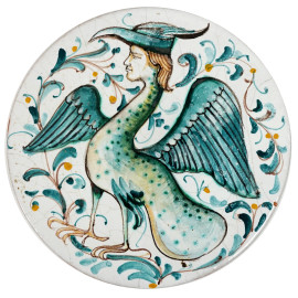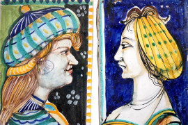 Dieci mattonelle in terracotta smaltata policroma raffiguranti profili di dame e gentiluomini, Giano bifronte ed un'arpia, XX secolo, alcune recanti firma a tergo G. Capitani, misure max cm 29x14,5, (difetti e restauri)