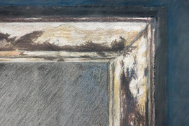 Finestra astratta, tecnica mista su carta, cm 74x100, firmato, entro cornice.
