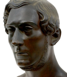 Fonderia napoletana del XIX secolo, Busto di gentiluomo, scultura in bronzo, cm h 64.