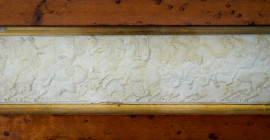 Fregio neoclassico in gesso raffigurante cavalleria, XIX secolo, cm 5,5x120, entro cornice, (difetti).