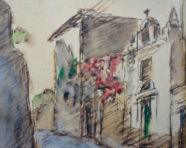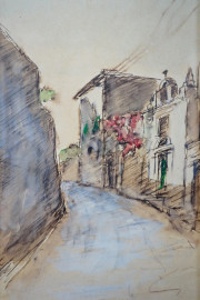 Gaeta - Via del Colle, tecnica mista su carta, cm 41x32, firmato G.Canova, entro cornice.