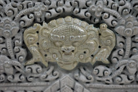 Gau,Tibet, XX secolo, con coperchio interamente adoronato da decorazioni a bassorilievo a motivi buddisti, cm 16x12x6