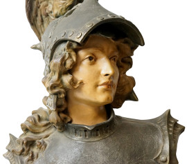 Giovanna d'Arco, busto in terracotta dipinta, cm 80x45, timbro a tergo, (difetti).