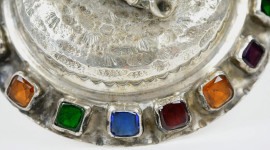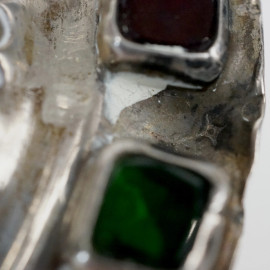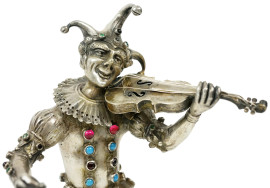 Giullare, scultura in argento e pietre pregiate multicolore incastonate, alt.cm 25, Germania, fine XVIII-inizi XIX secolo, peso lordo gr. 510
