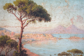Golfo di Napoli, olio su tavoletta, cm 16x27, XX secolo.