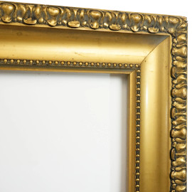 Grande cornice in legno intagliato e dorato, XX secolo, misure ingombro cm 185x132, misure luce cm 163,5x111, (difetti)