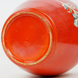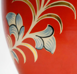 Grande vaso biansato in porcellana rossa con decoro floreale e lumeggiature dorate, XX secolo, cm h 40.