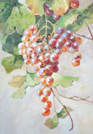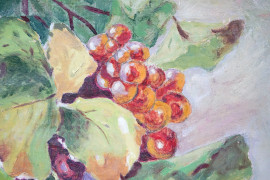 Grappoli d'uva, olio su tela riportata su tavoletta, cm 49x33.5, firmato L. De Cecco