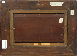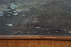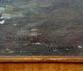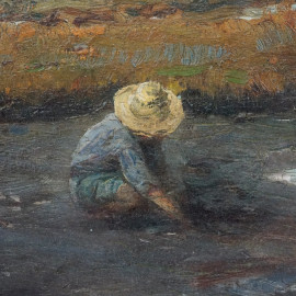 Guglielmo Ciardi (1842-1917) Attr. a, Scorcio palustre con figura, olio su tavola, cm 19,5x34,5, entro cornice.