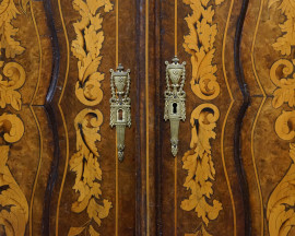 Importante trumeau riccamente intarsiato, Olanda, XVIII secolo, cm h 235x190x63, (difetti, elementi sostituiti)