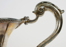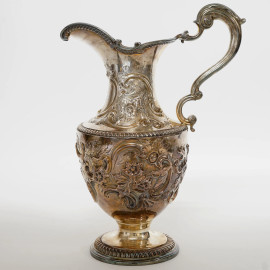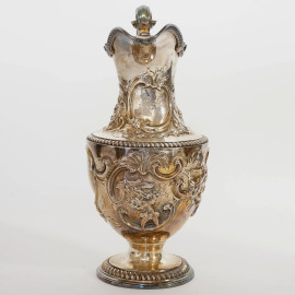 Importante versatoio in argento, punzoni Londra, Giorgio III, 1770, argentiere Daniel Smith&Robert Sharp, corpo finemente sbalzato e cesellato a motivi floreali, cm h 32, peso gr.1200