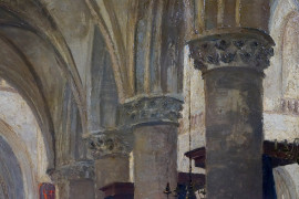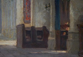 Interno di Cattedrale, olio su tela, cm 116x80,5, fine XIX secolo, entro cornice.