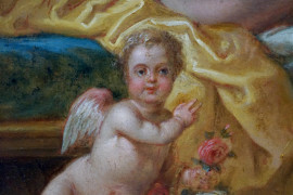 J.f. Schall (1752.1825) cerchia di, Venere e Cupido, olio su tavola, cm 30x24, entro cornice.