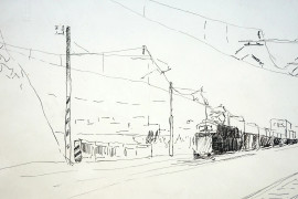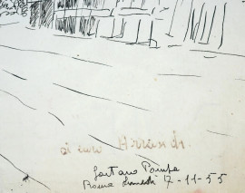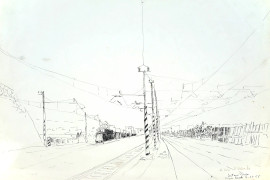 La ferrovia, china su carta, cm 23,5x33, firmato e datato Gaetano Pompa, in cornice, (difetti)