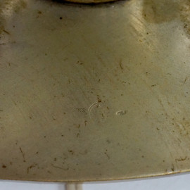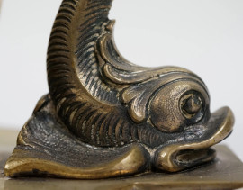 Lampada da tavolo in argento 800, fusto a due sfere sovrapposte in marmo blu, sorretto idealmente da tre animali marini, cm h 49x18, seconda metà XX secolo.