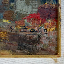 Lavandaie, olio su tavoletta, cm 27x37, firmato E.Zago, in cornice.