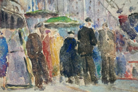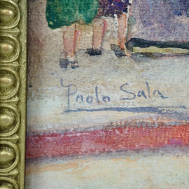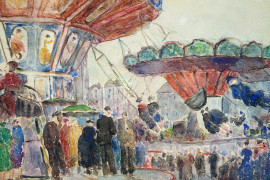 Le giostre, acquarello su carta, cm 36x40, firmato, entro cornice