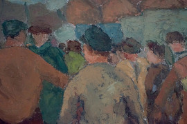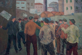 Lo sciopero, olio su tela, cm 60x50, firmato, in cornice.