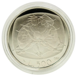 - Moneta celebrativa della famiglia L. 500 in argento, autore Carmela Colaneri, diam. cm 2.9, gr.11