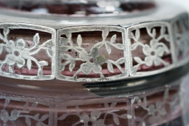 Lotto composto da un porta cipria, un porta profumo e una scatola in cristallo di Boemia con decori argentati, misure max cm 16, (difetti).
