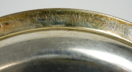 Lotto di 8 piattini e 11 coppette in argento, prima metà del XX secolo, corpo liscio, bordi a nastro ritorto, peso gr. 2260, (difetti)