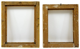 Lotto di due cornici rettangolari in legno dorato, XIX-XX secolo, misure max cm 53,5x43, (difetti)