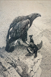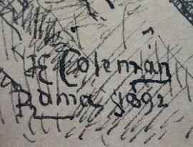 Lotto di due disegni a tecnica mista su carta raffiguranti Aquila e Chierichetto, misure max cm 16x11, firmati rispettivamente Coleman e José Bellinure, entro cornici