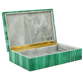 Lotto di due portagioie in malachite ed alabastro rosa, misure max cm 4x15,5x10,5, metà XX secolo, (lievi difetti).