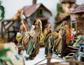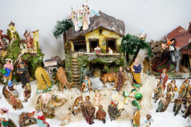 Lotto di vari gruppi, figure ed architetture da presepe, XX secolo, (difetti, mancanze e rotture)
