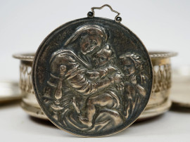 Lotto di vari oggetti in argento e metallo argentato, manifatture diverse, misure max cm 12,5x18, peso netto argento gr. 230, (difetti)
