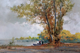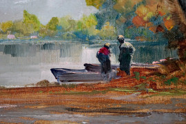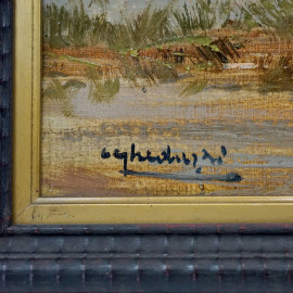 Lungo il Po', olio su tavola, cm 50x70, firmato Gheduzzi, entro cornice.
