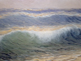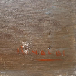 M. Rinaldi (1916) Marina all’imbrunire, anni 40, olio su tela, cm 40x50, firmato