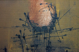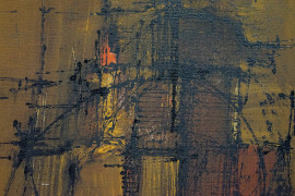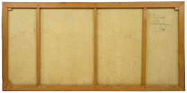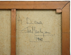 Senza titolo, olio su tela, cm 80x170, dedica e data 1960 a tergo, entro cornice.