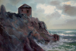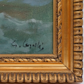 Marina ligure al tramonto, olio su tela, cm 50x70, firmato Giuseppe Caselli, entro cornice.