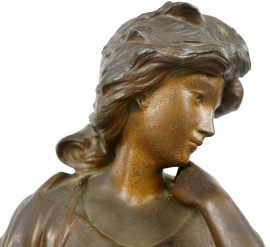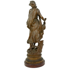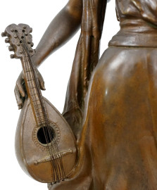 Mignon - Fanciulla con mandolino, scultura in antimonio, cm h 58, firmata Lucas Madrassi.