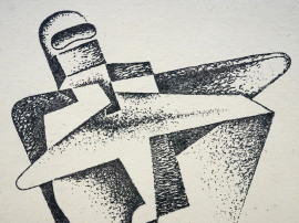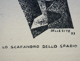 Mino delle Site, (Lecce, 1º maggio 1914 – Roma, 1996), Lo scafandro dello spazio, acquaforte, cm 21,5x16, in cornice