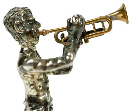 Musicisti, cinque piccole sculture in argento 800, alt.max cm 9,5, seconda metà XX secolo, peso gr.500
