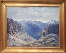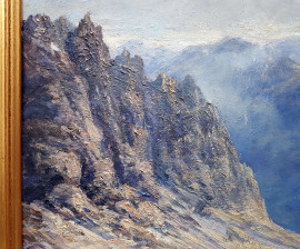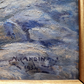 N. Cardinati (XIX sec.) Paesaggio montano, 1934, olio su cartone, cm 34x45, firmato e datato, con cornice