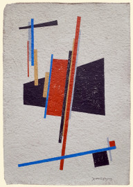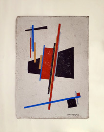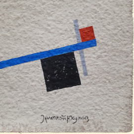 Nikolaj Yusupov (XX sec.), Composizione suprematista, tecnica mista su carta, cm 37x26, firmato i caratteri cirillici in basso a destra