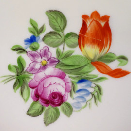 Nove piattini da dolce in porcellana policroma Herend, XX secolo, diam.cm 18,5.
