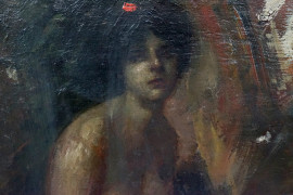 Nudo di donna, olio su tavoletta, cm 38x40, firmato, entro cornice.