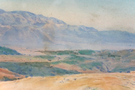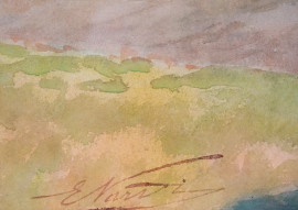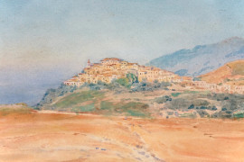 Olevano Romano, acquarello, cm 30x66, firmato Nardi, entro cornice