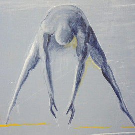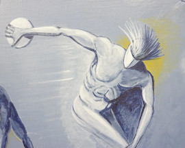 Olimpiadi in blu, olio su tela, cm 50.5x60.5, siglato, in cornice