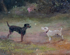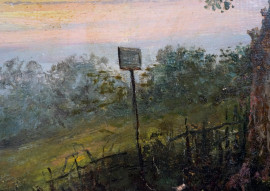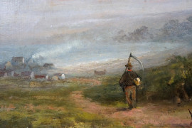 Paesaggio con contadino, olio su carta applicata su tavola, cm 26,5x37, XIX secolo, (difetti)