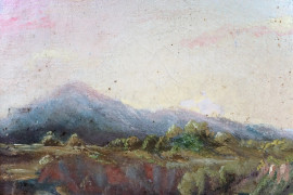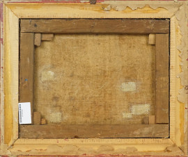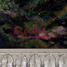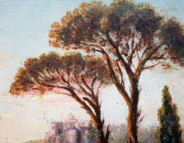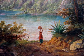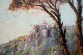Paesaggio costiero con figura, olio su tela, cm 32x40, firmato, entro cornice